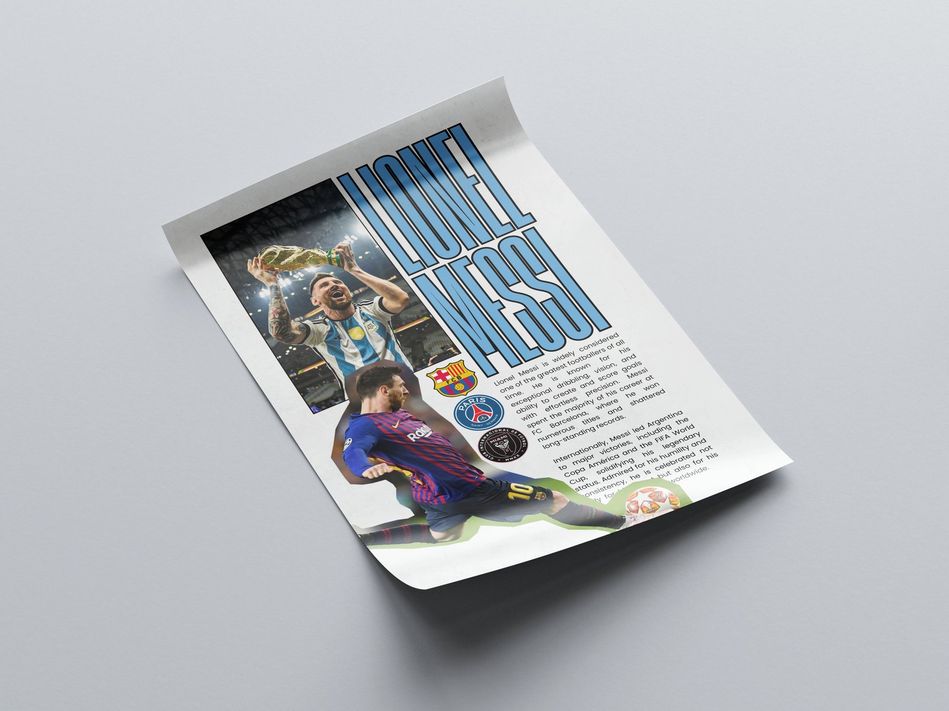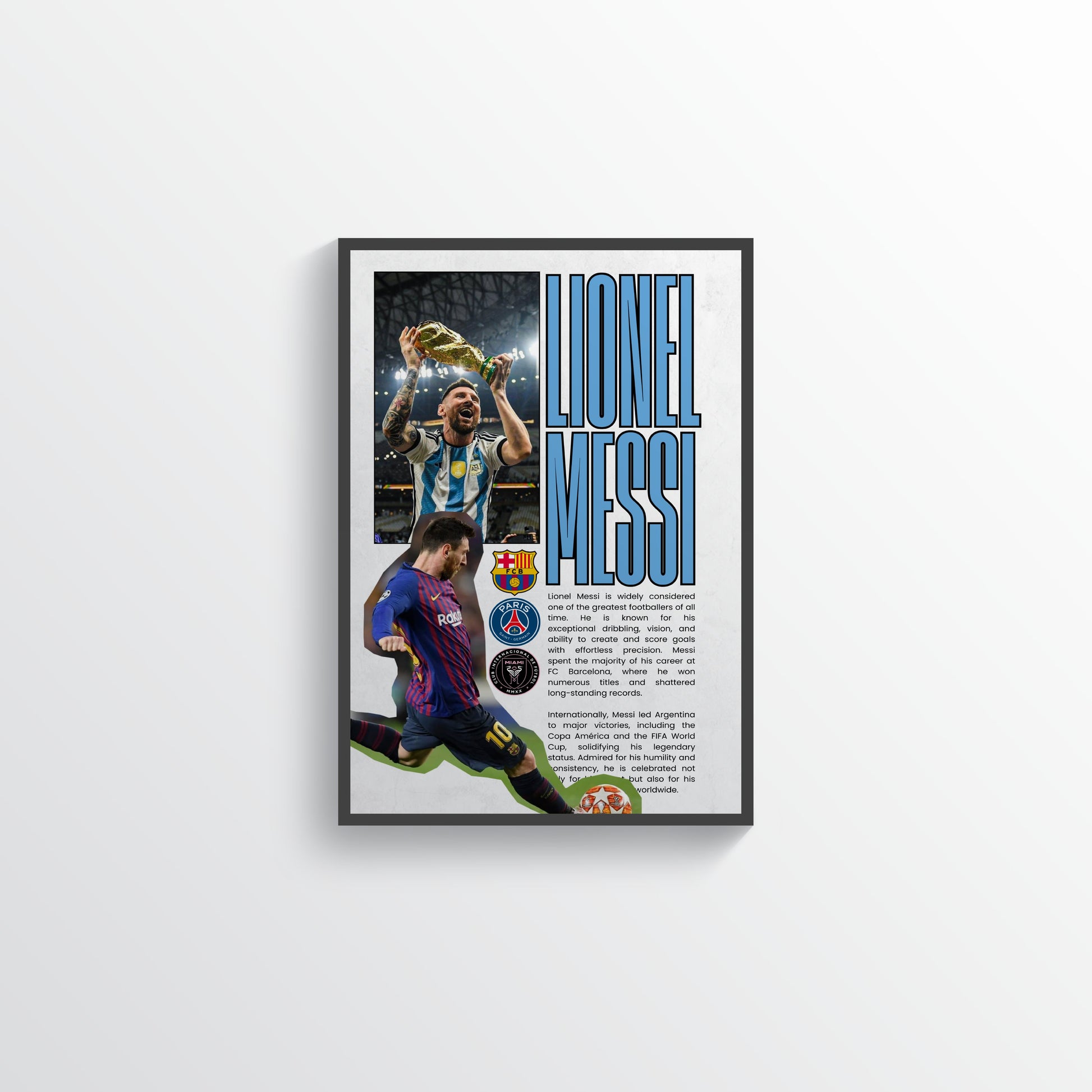 Lionel Messi World Champion Football Poster premium wall art by RyotoPosters. Perfect for fans and collectors.