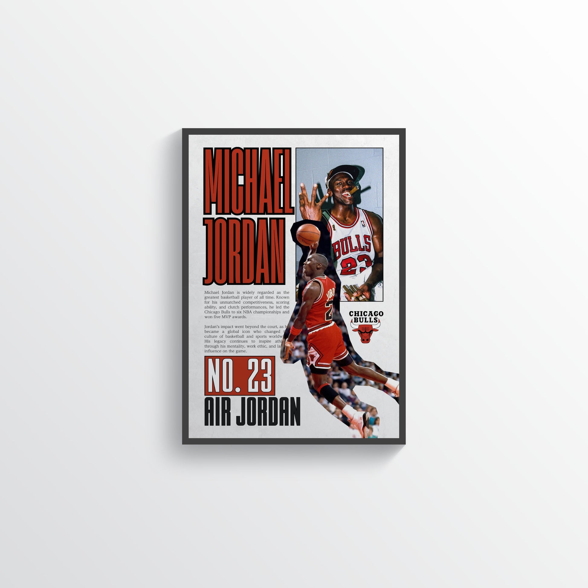 Michael Jordan No. 23 Chicago Bulls Poster premium wall art by RyotoPosters. Perfect for fans and collectors.